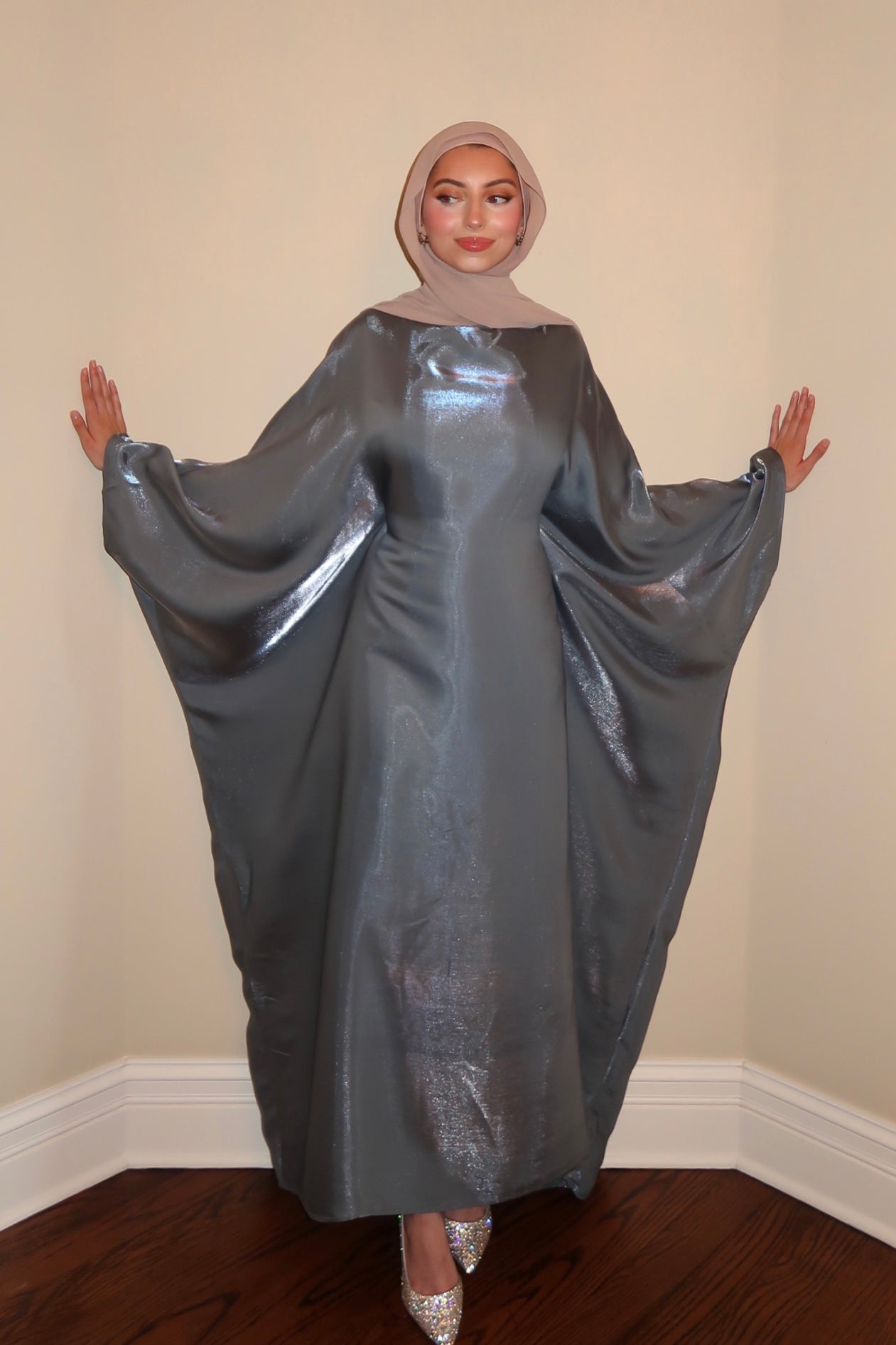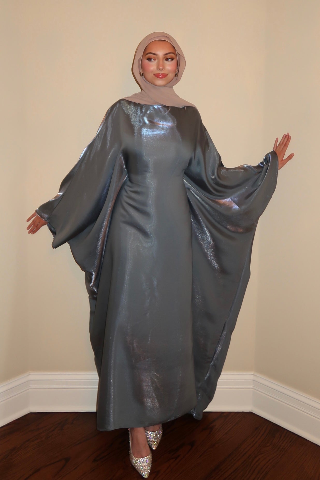 The Charcoal Butterfly Abaya is crafted from an iridescent, lightweight fabric. This piece features a hidden belt inside to create the signature butterfly abaya effect. Its flowing design and delicate shimmer will make you feel effortlessly elegant and confident.